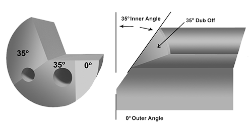 This Nose Grind is for applications requiring nearly flat bottoms. It can also be ground for a completely flat bottom or on difficult materials used to qualify bottoms only.